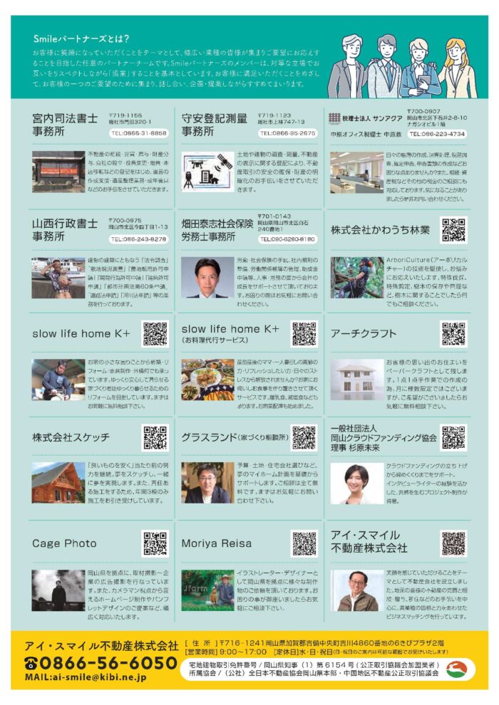 Smileパートパートナーズのメンバーが協力して吉備高原にお住いの皆様、吉備高原への移住をお考えの皆様を応援します!