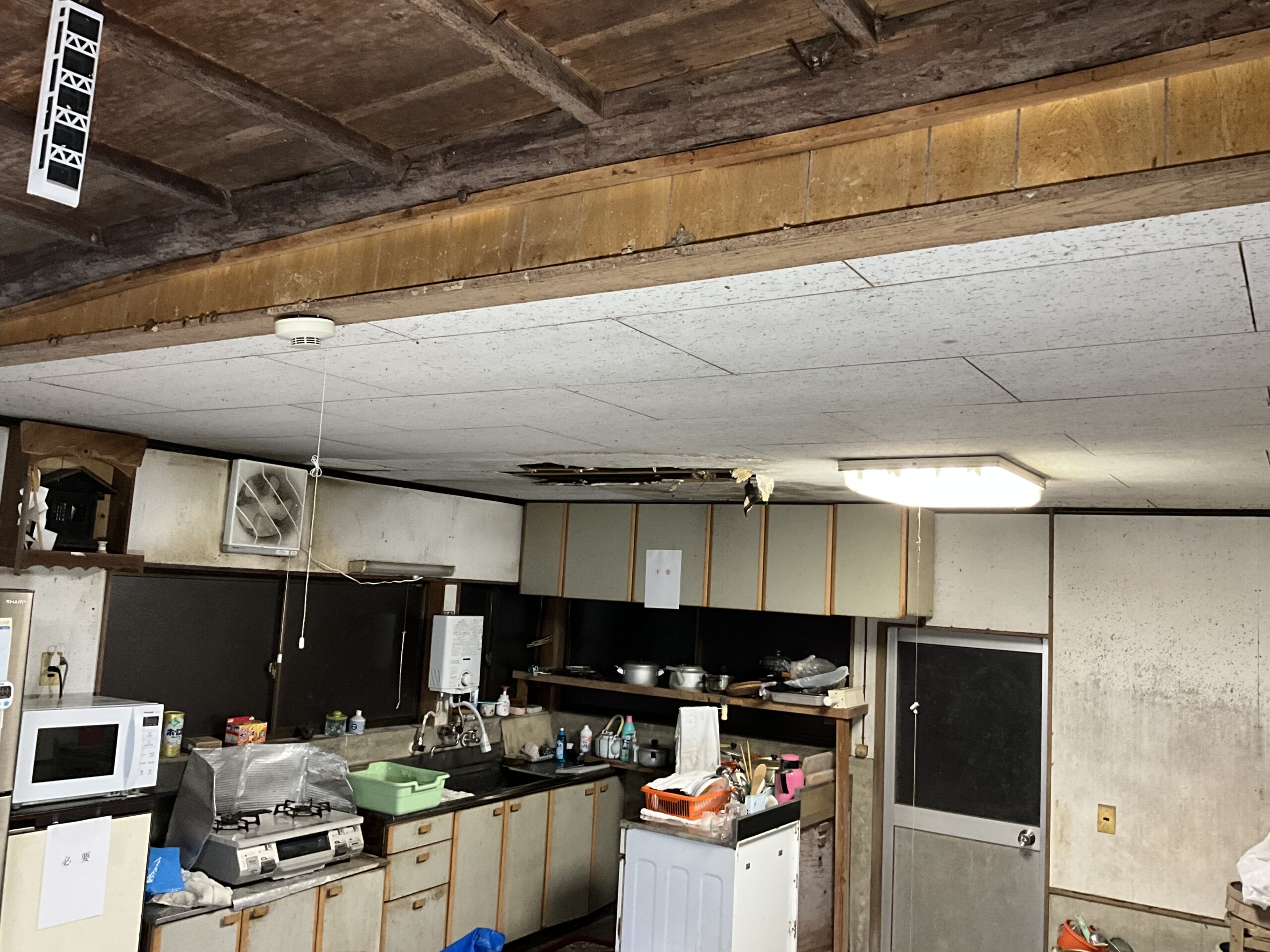 台所付近の雨漏りについては、決済お引渡し日までに売主様の負担により屋根の雨漏り部分の補修を行いお引渡しします。