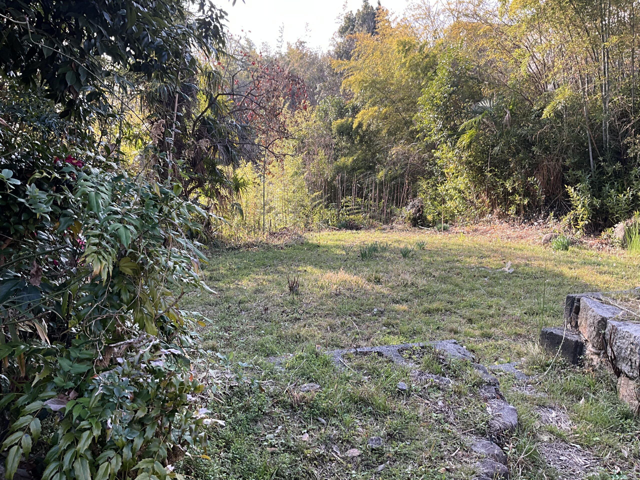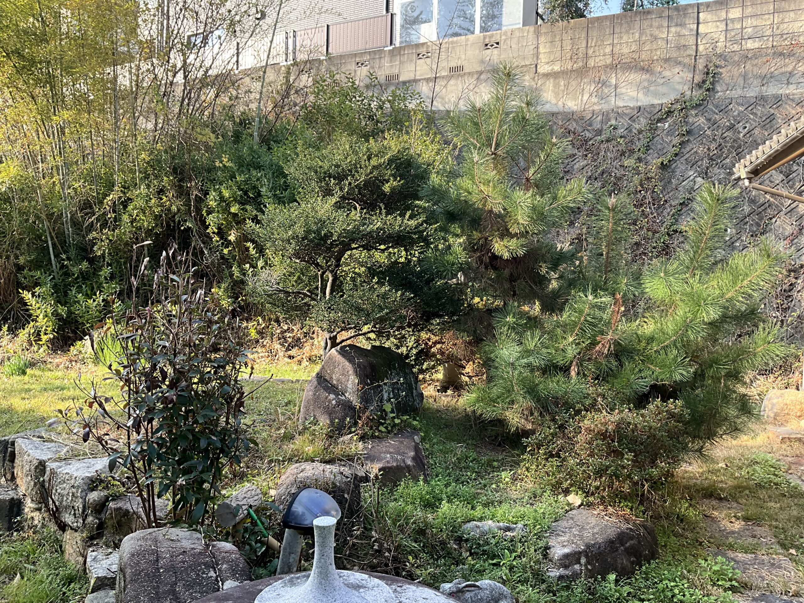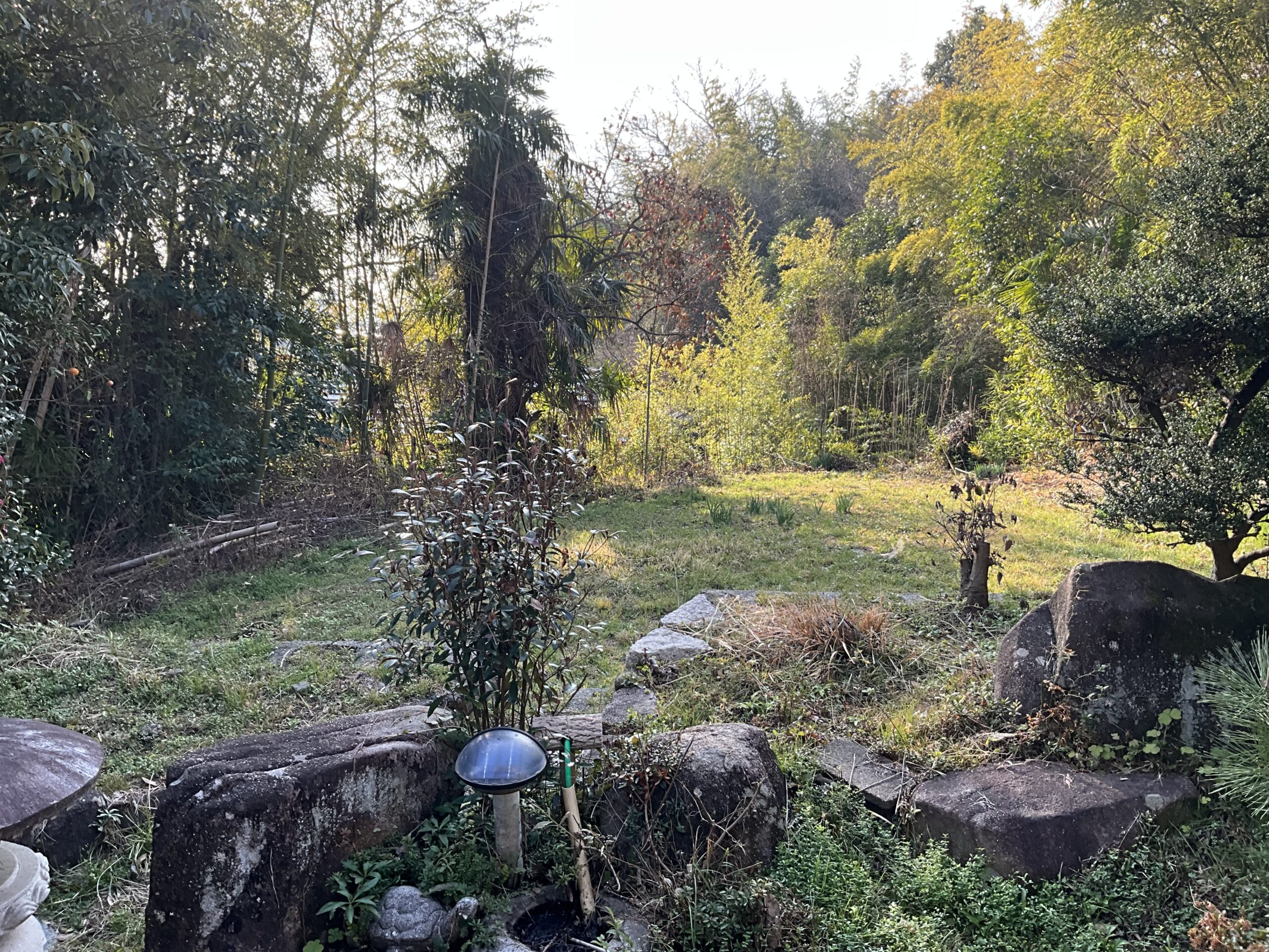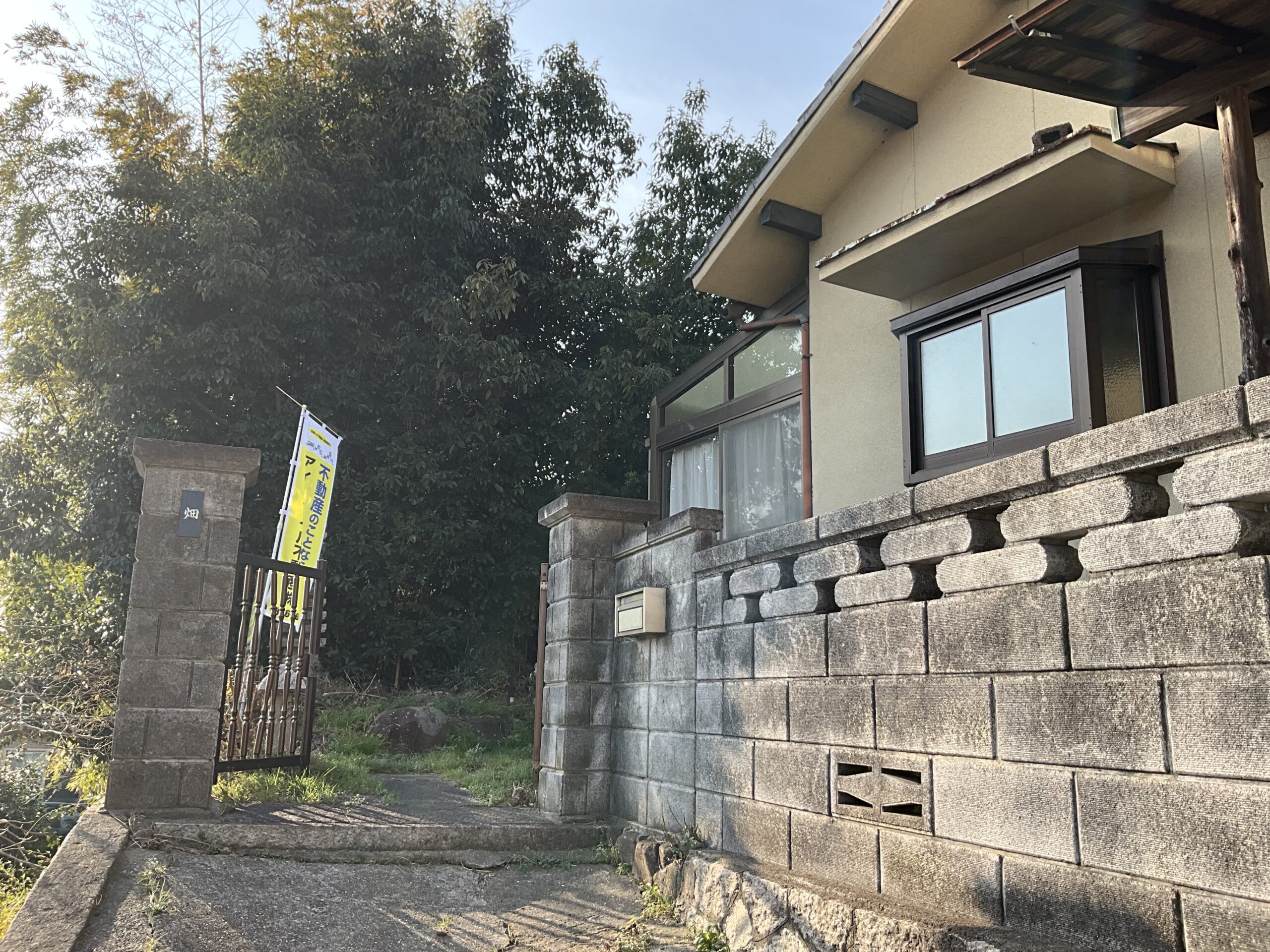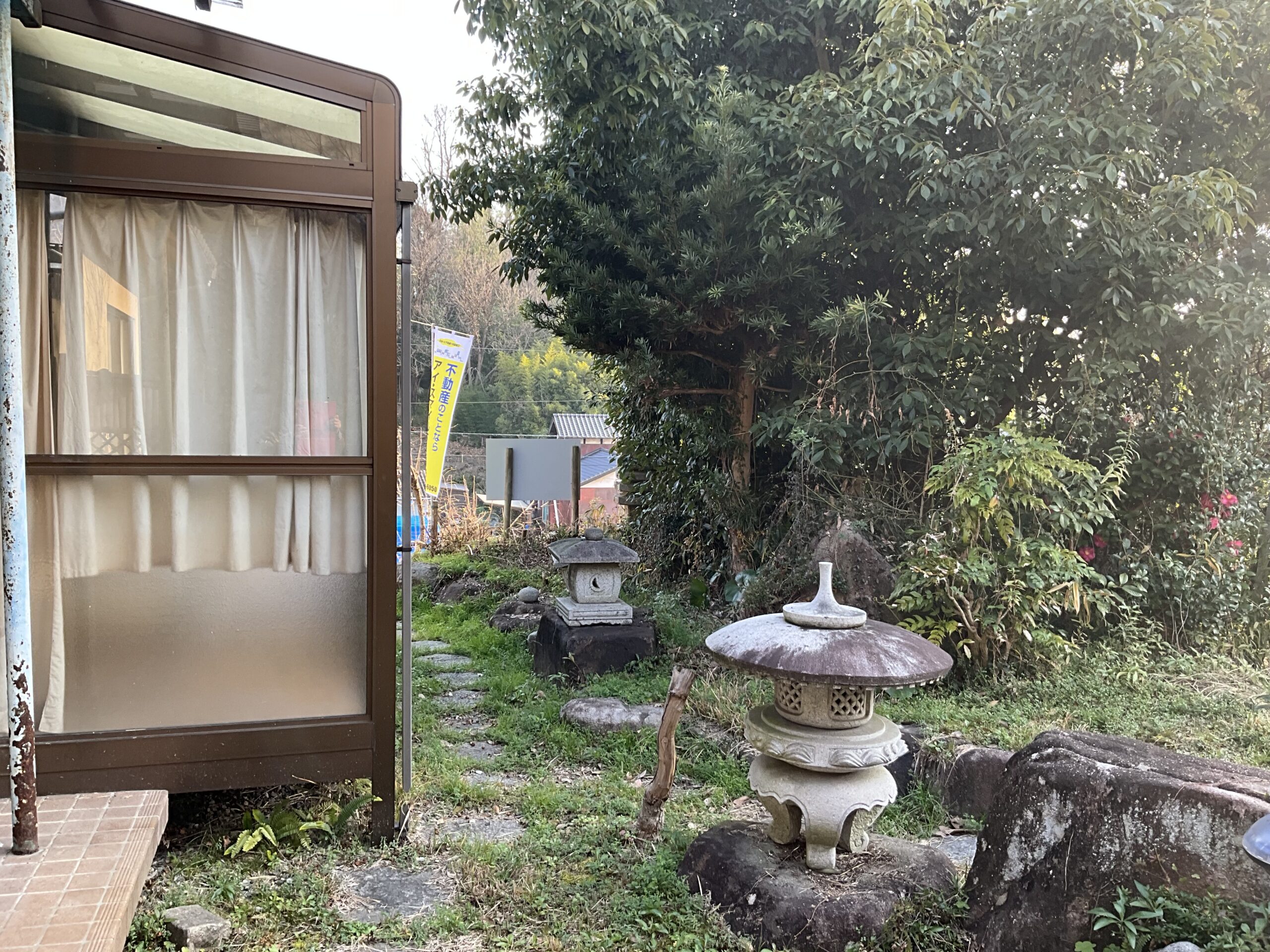 市道から門を入ると南側に地目「畑」の庭があります。 掲載の土地面積には、実質庭の部分(地目:畑)の面積209㎡を含めて記載しています。