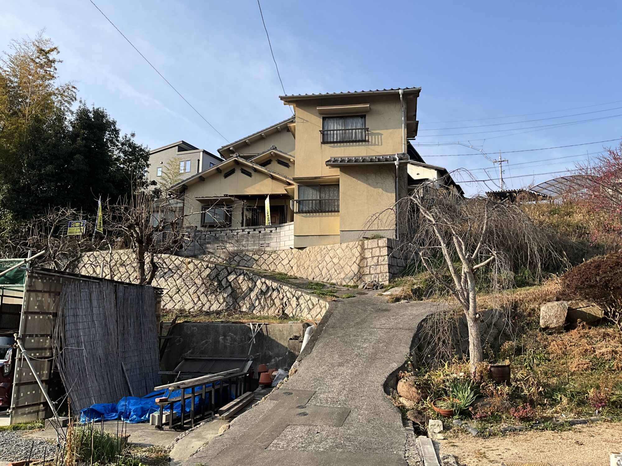 ・本物件は傾斜地にたつ駐車場のない物件ですが、小中学校、スーパー等にも1キロ程度と近い物件です。
